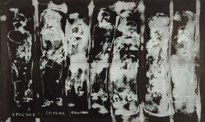 Die Offenbarung des Johannes konfrontiert mit der fundamentalen Frage nach dem Verhältnis von Weltgeschichte und Heilsgeschichte. Sie formuliert diese mit äußerster Schärfe, ohne sie aufzulösen. Gerade diese Unabgeschlossenheit bildet den Ausgangspunkt für Gassmanns künstlerische Praxis. In seinem Zyklus wird die lineare Zeitstruktur aufgebrochen; die Bilder erscheinen als aufeinanderfolgende Verdichtungen eines sich steigernden Grenzerlebnisses.