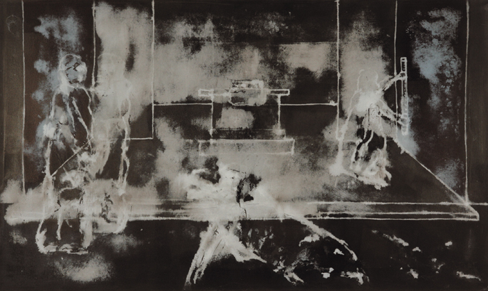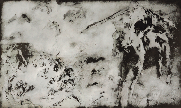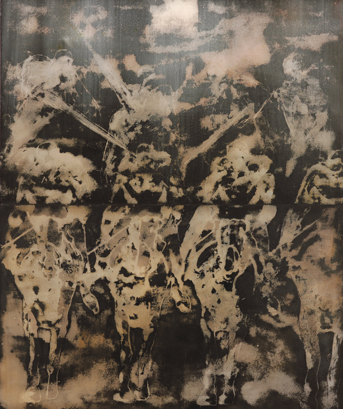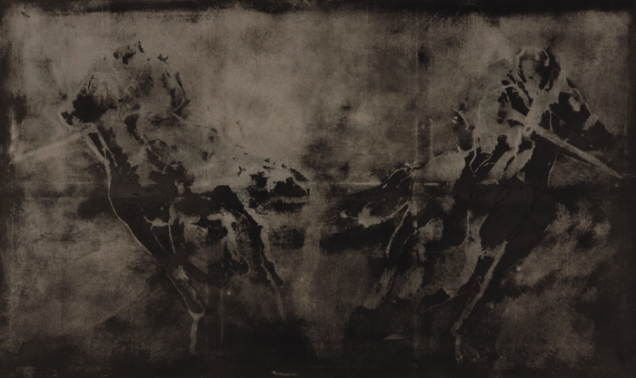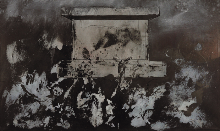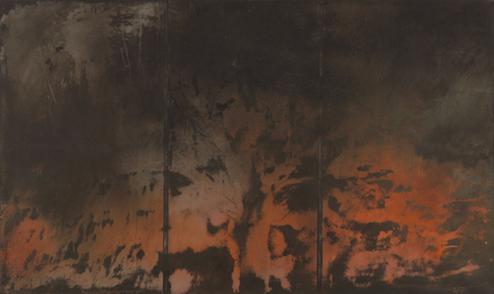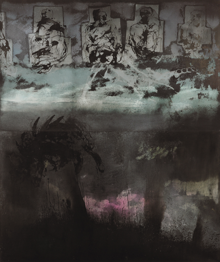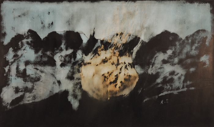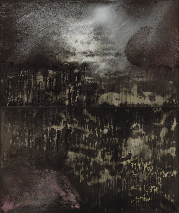 Seine Arbeiten sind durchzogen von einer dunklen, konzentrierten Energie. In der Verbindung von Maßstab, Geste und Materialität entstehen Bildräume von nahezu physischer Präsenz. Es sind keine Darstellungen eines Endes, sondern dessen Erfahrbarmachung. Die Grenzen zwischen Sichtbarkeit und Vision, Ordnung und Auflösung werden dabei fortwährend verschoben.