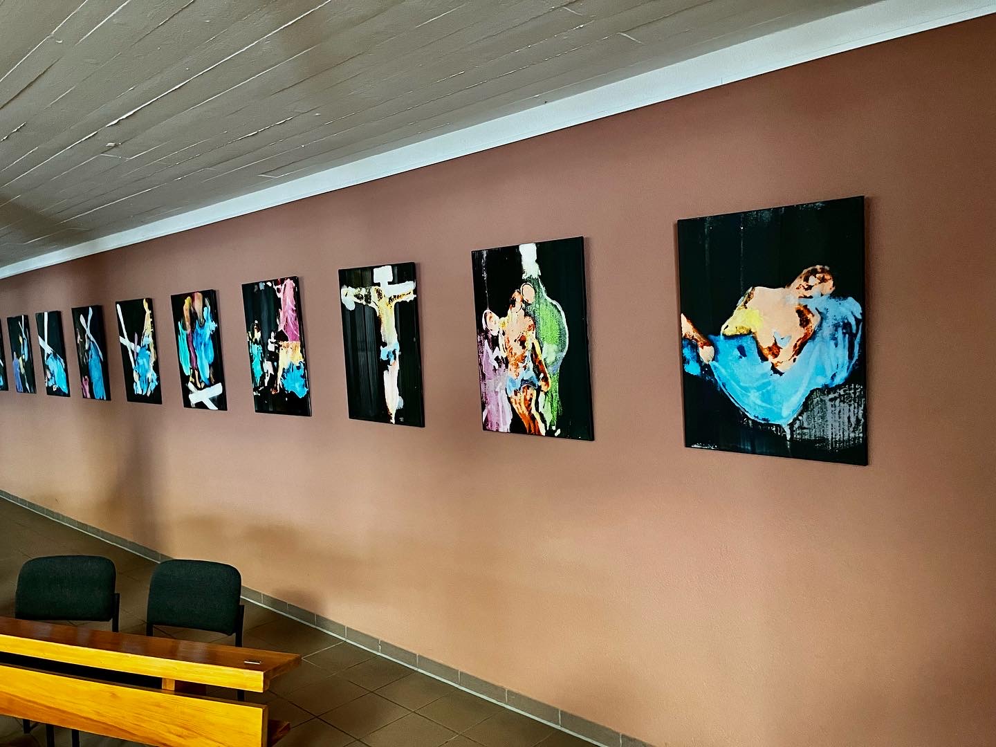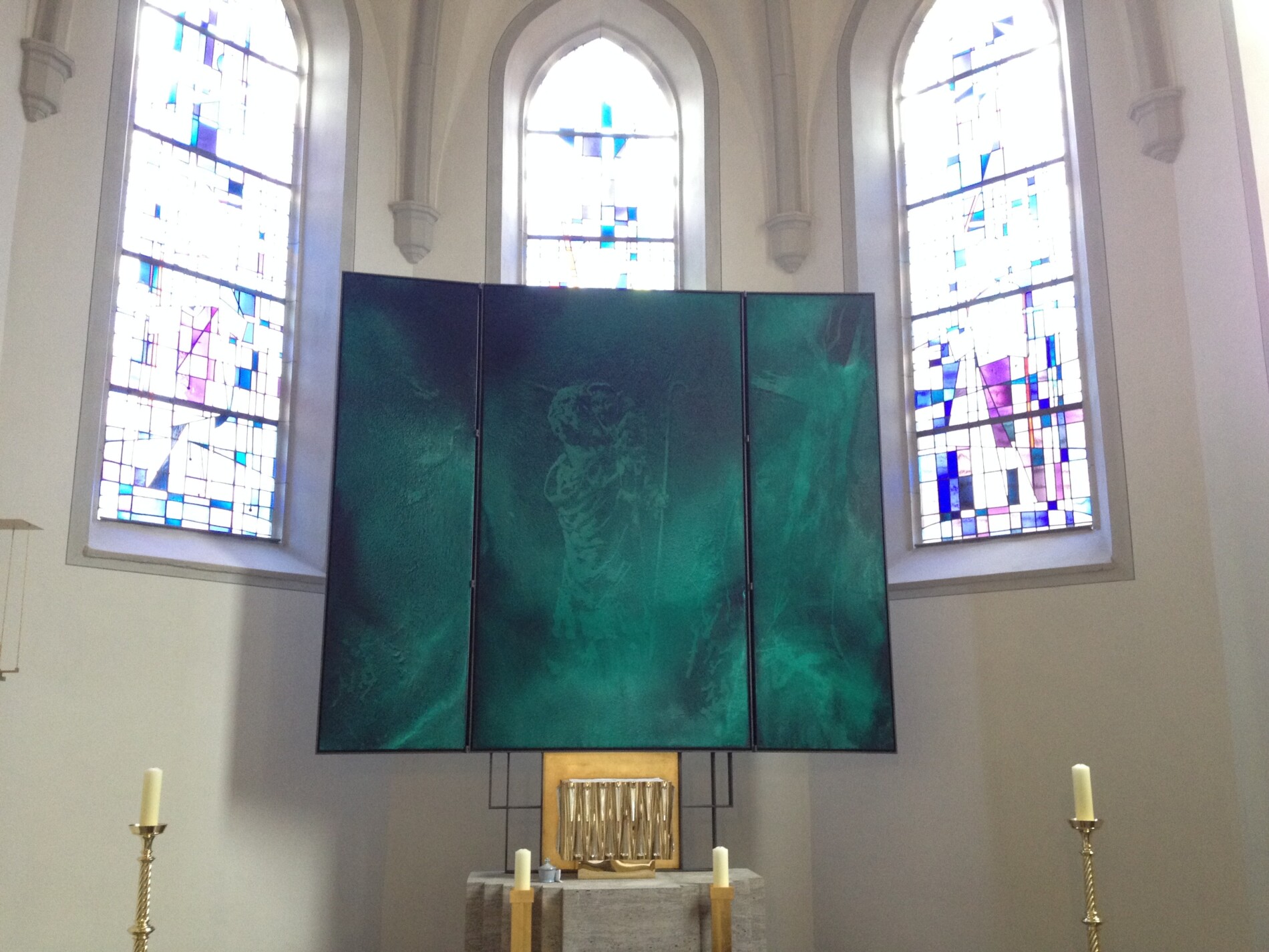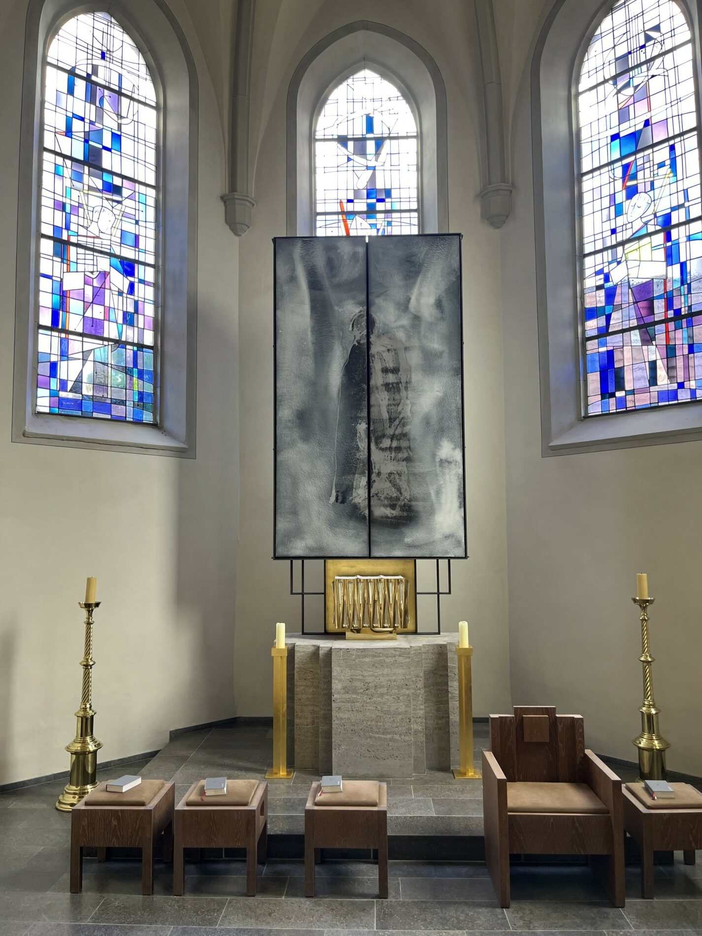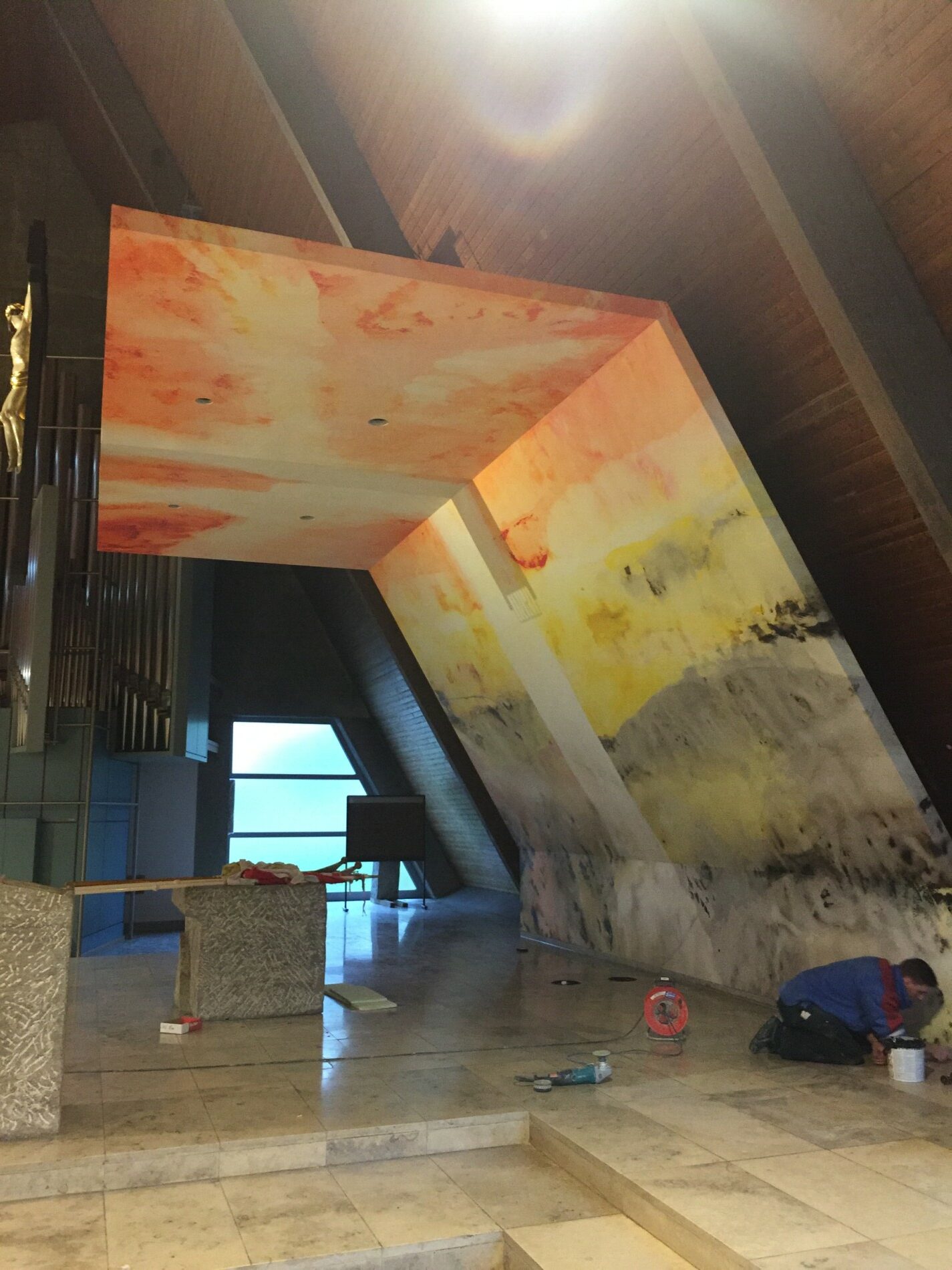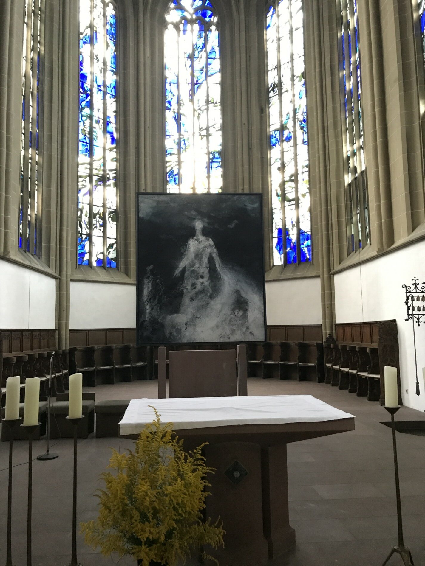 Er realisiert auch Altäre und sakrale Großprojekte, darunter den Flügelaltar in Schwarzenau und das monumentale Werk Neues Jerusalem in der Augustinerkirche in Würzburg. Besonders beeindruckend ist das Altarbild Tod und Auferstehungin St. Oswald in Baunach, während drei weitere Werke mit dem Titel Auferstehung über der Bischofsgrablege im Würzburger Dom zu sehen sind – ein deutliches Zeichen der hohen Anerkennung seines außergewöhnlichen Talents durch die Kirche.